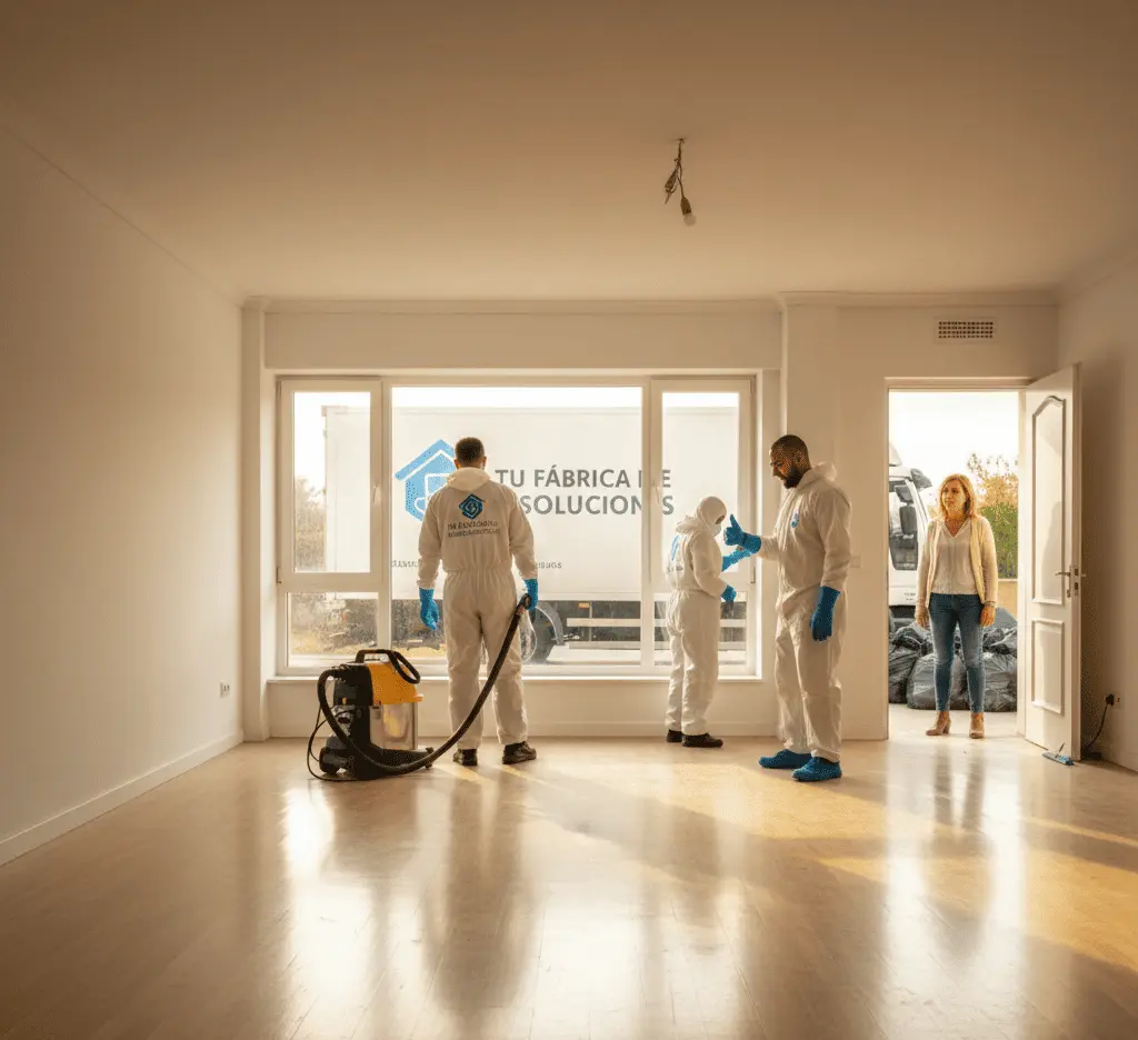 Especialistas en situaciones extremas, incluyendo Síndrome de Diógenes y acumulaciones severas. Actuamos con total discreción, rapidez y respeto, gestionando la clasificación, retirada de enseres y desinfección profunda. Dejamos el inmueble como un lienzo en blanco listo para renacer.